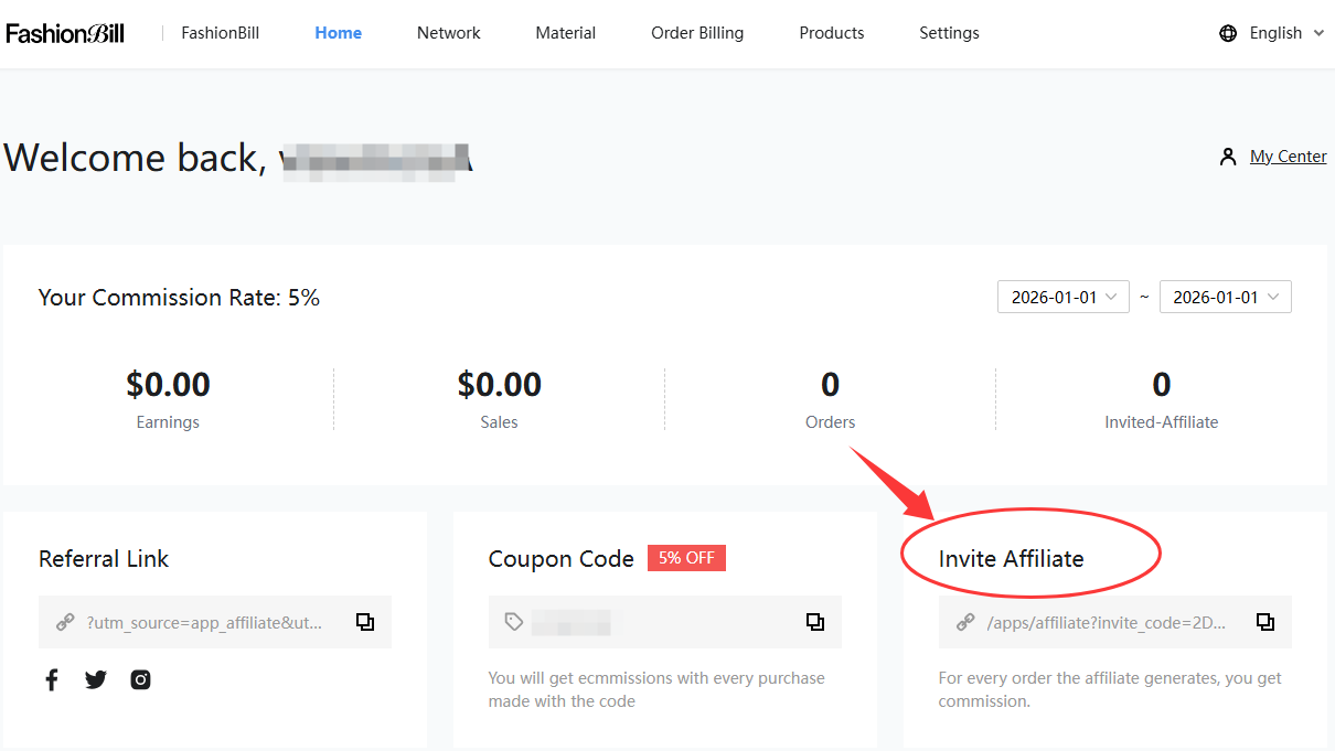 According to insights from other top distribution teams, platforms like Facebook, TikTok, Pinterest, Instagram, and X have extremely active user bases. Post content about FashionBill on these platforms and include your Invite Affiliate link—this will let countless users sign up for the Affiliate Program through your link and become your downline affiliates.